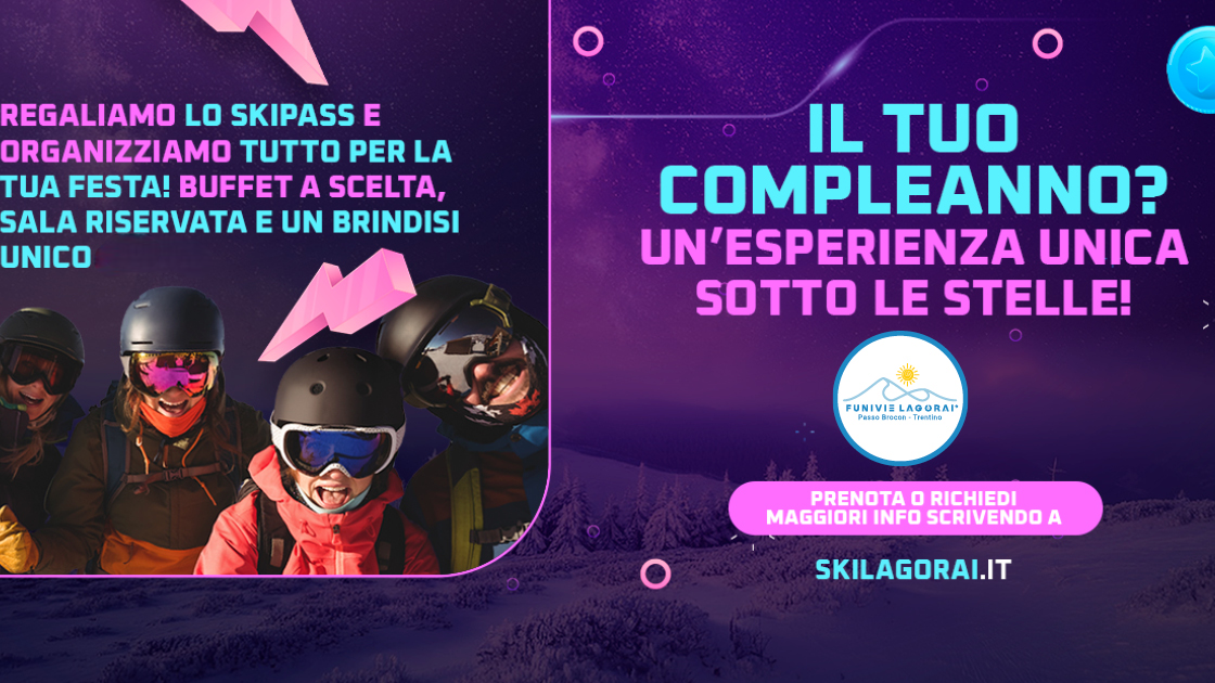 Super novità 2025! Puoi ora festeggiare il tuo compleanno a Passo Brocon, con Funivie Lagorai. Orga...